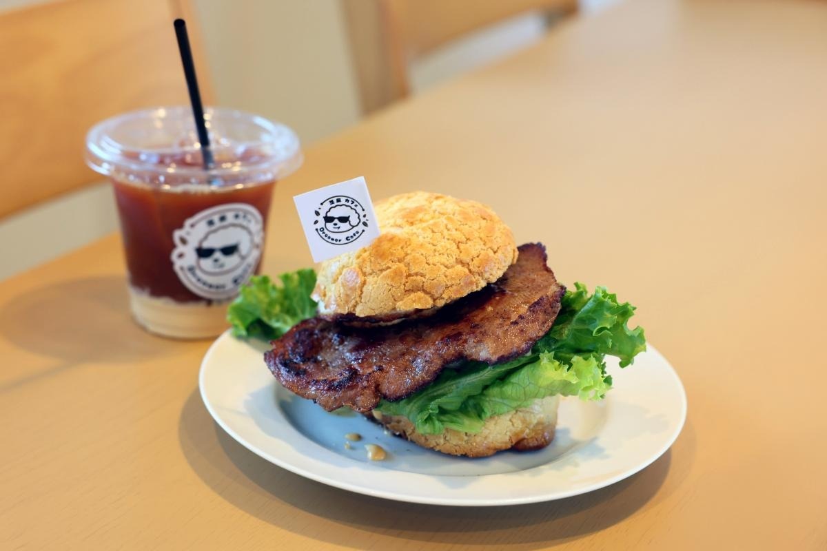 焼き上がるとほんのり甘い香りが店内に漂います。バンズは毎朝つくる自家製です。