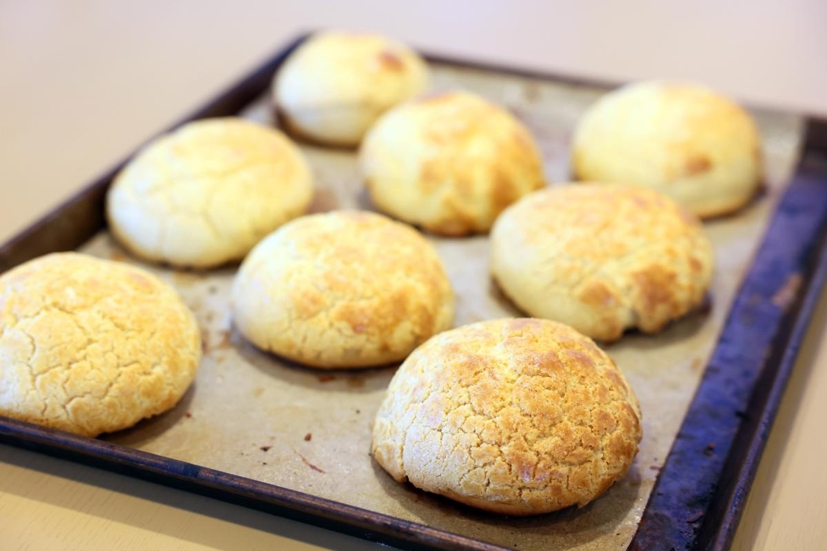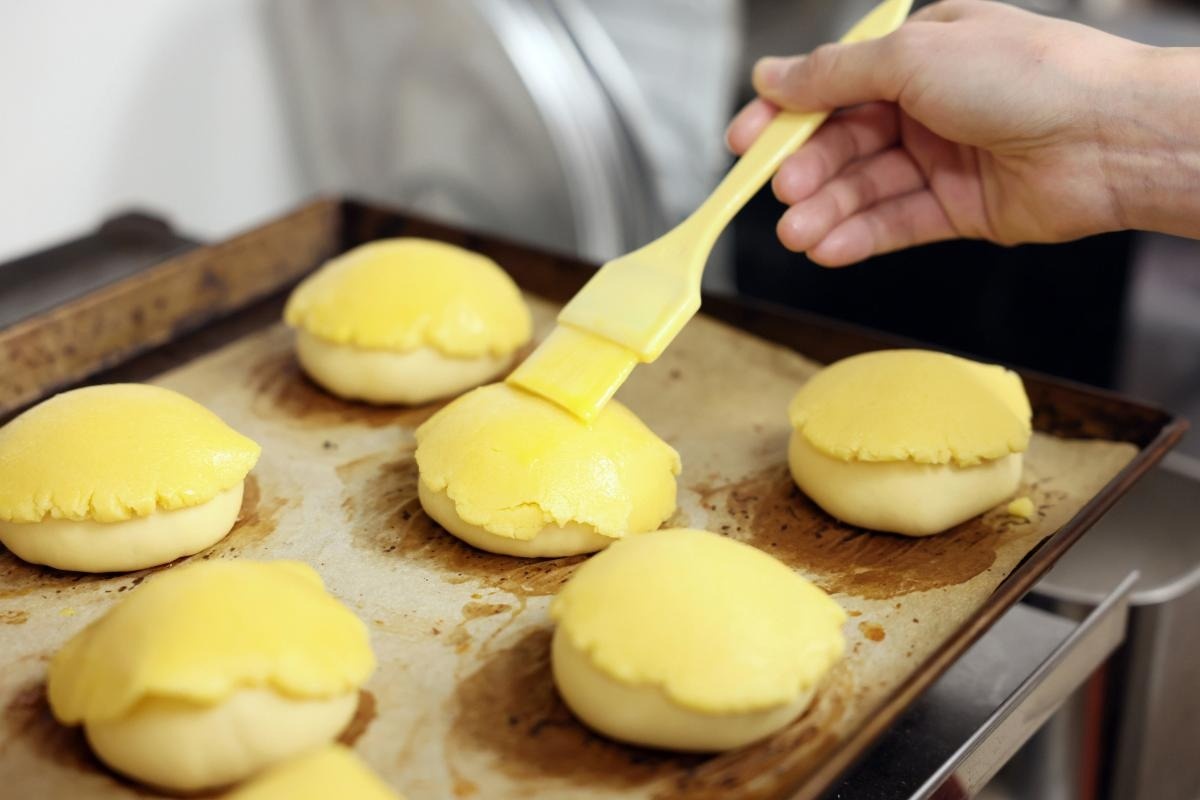 開店前のお店では、料理の下準備中。作っているのはバーガーで使用するバンズ「香港風メロンパン」です。