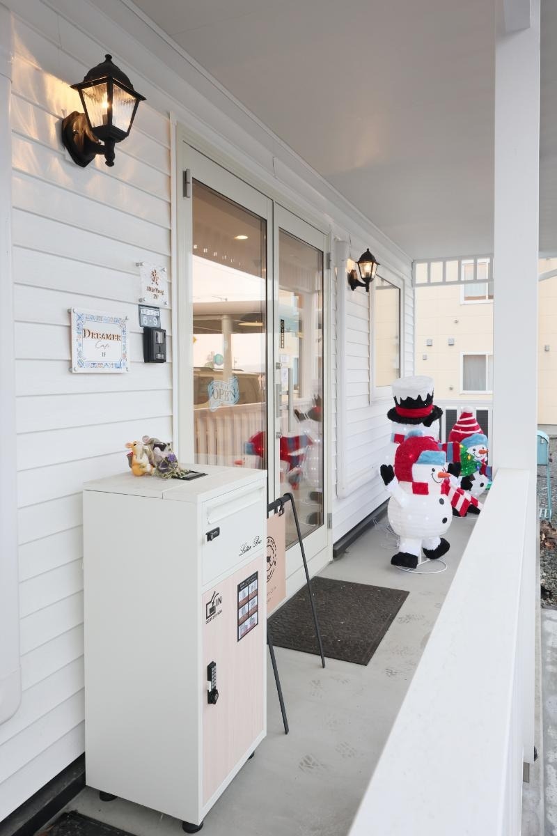 取材に訪れたのは11月中旬のこと。ポーチには雪だるまのイルミネーションが飾られ、お店はクリスマスの装いに。入口付近からウェルカムな雰囲気です。