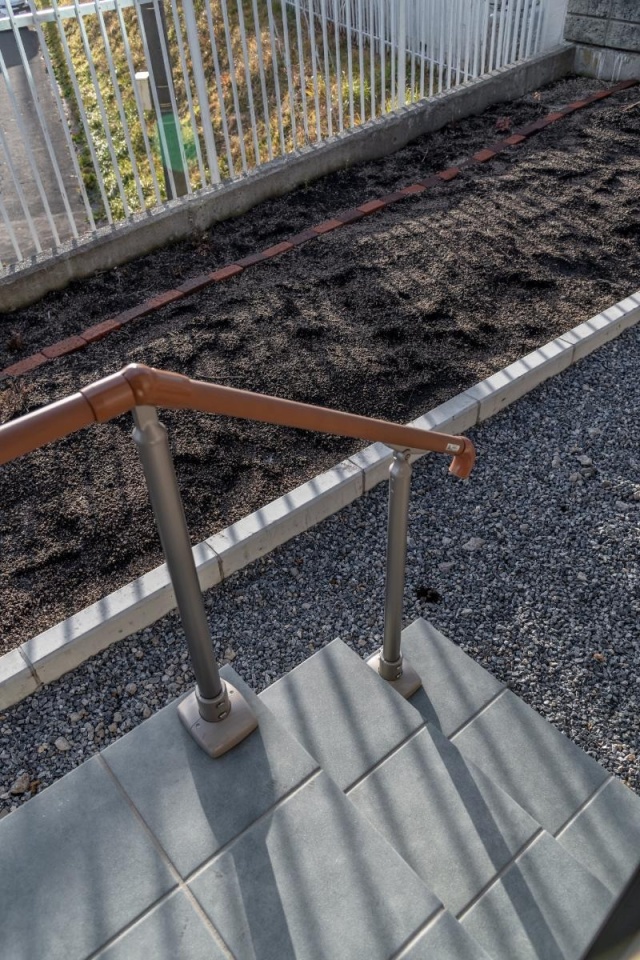 花や野菜を育てるのが好きなお母さまが安全に庭へ出られるよう、掃き出し窓の外に手すりの付いた階段を設置しました。