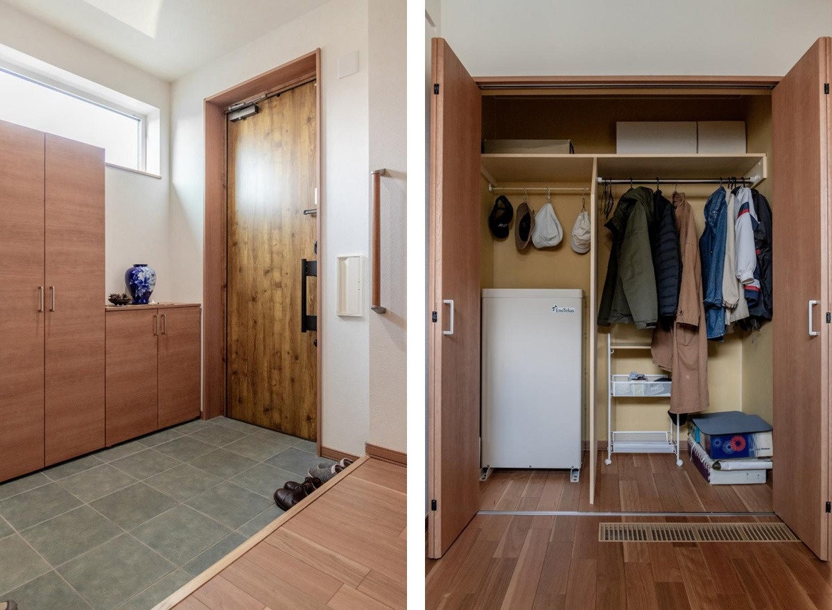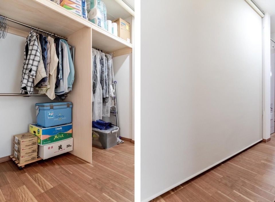 写真右/コートやジャケットを収納する大きなクローゼットも新設。この中に蓄電池を設置しています。