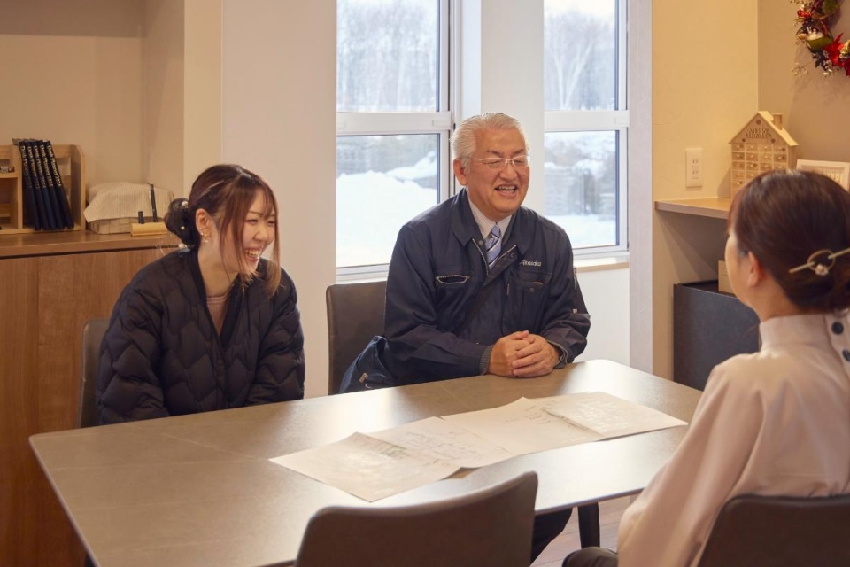 奥さま 帯広や音更で10社以上の住宅見学会などを回りました。当時は子どもが幼かったので、見学会では室内を触ったり汚したりしないかと毎回ハラハラで……。なかなか落ち着いて検討できない中、赤坂建設さんでは「お子さんは私たちが見ていますから、どうぞご夫婦でゆっくり見学していってください」と言ってもらえてとても嬉しかったんです。