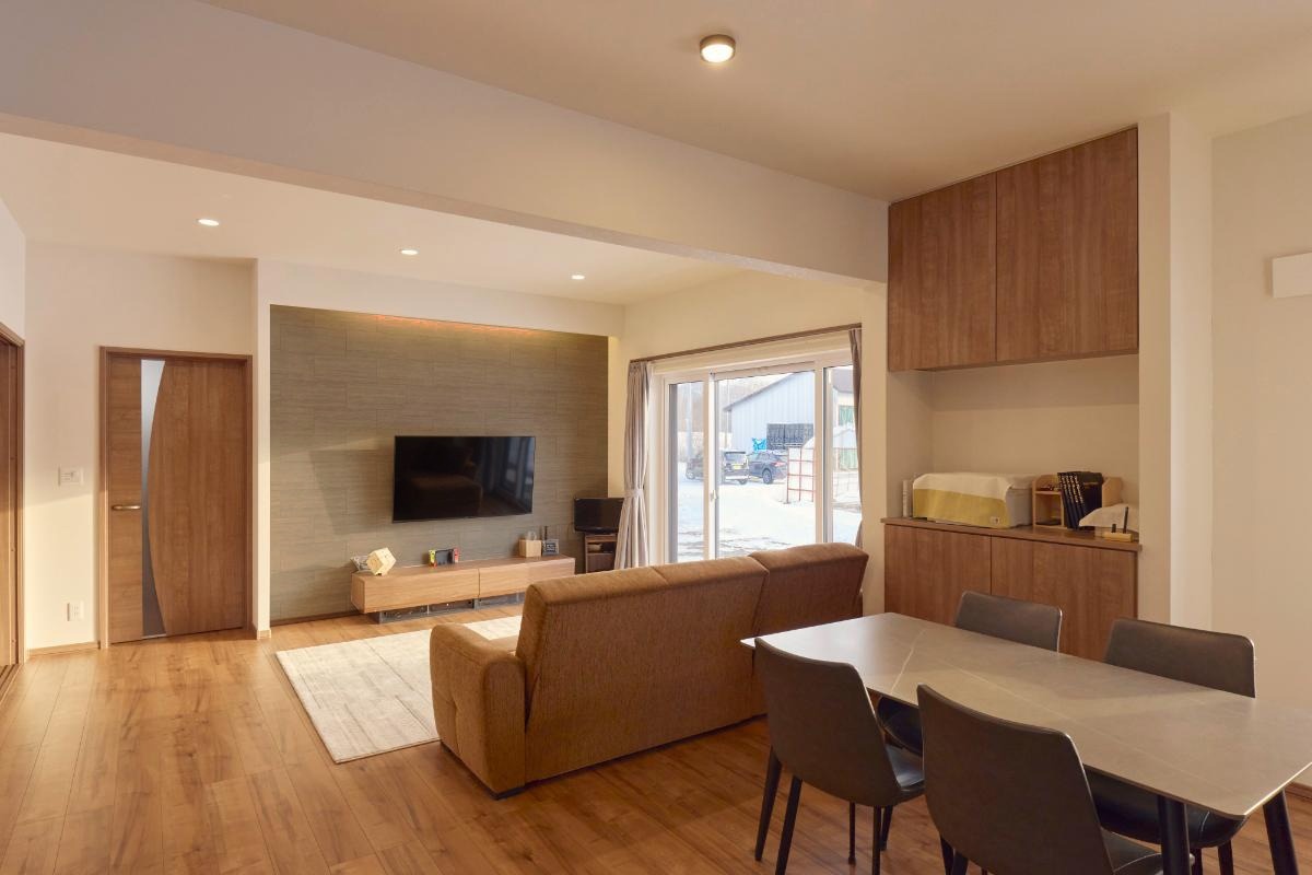 奥さま 足寄は寒いので、一階は全部屋床暖房を敷き、断熱も標準にプラスした仕様にしてもらったのですが、すごく心地良くて夫も子どもたちも喜んでいます。