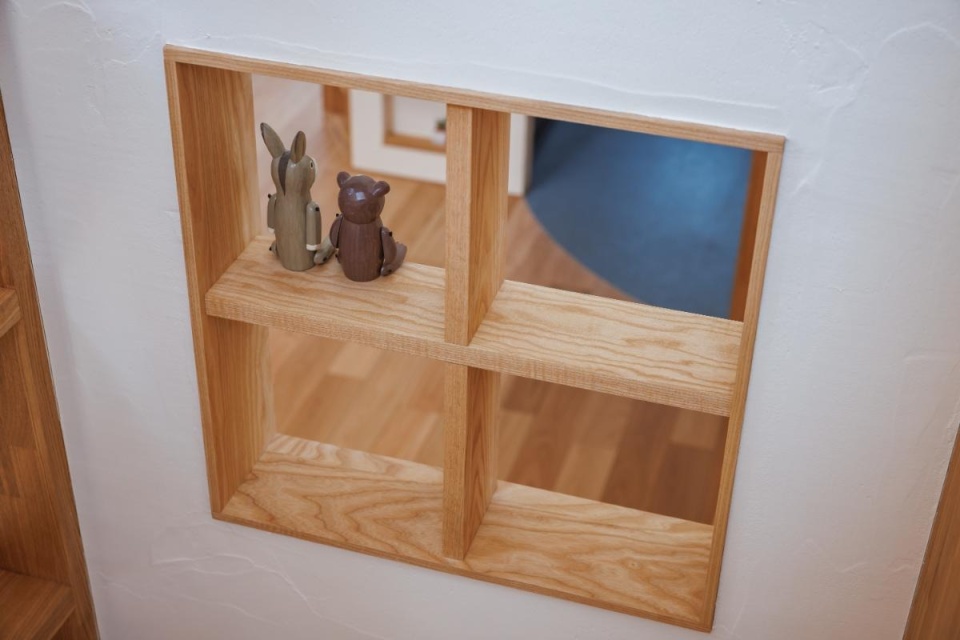 背面の収納はタモ材で造作したキクザワのオリジナルです。