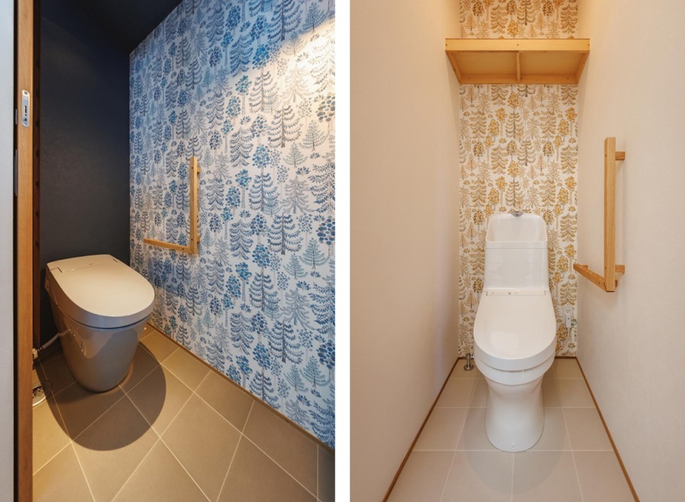アクセントクロスが印象的なトイレ空間。