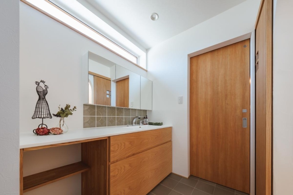 洗面台の上に窓を設けているので、自然光が注ぎます。
