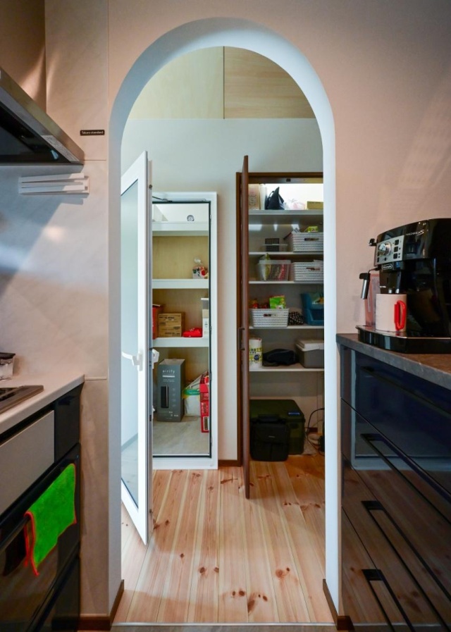 キッチンの近くには、外気を導入して低温状態を保つ食品庫やパントリーがあり、料理しやすい環境が整っているのも大きなポイント。