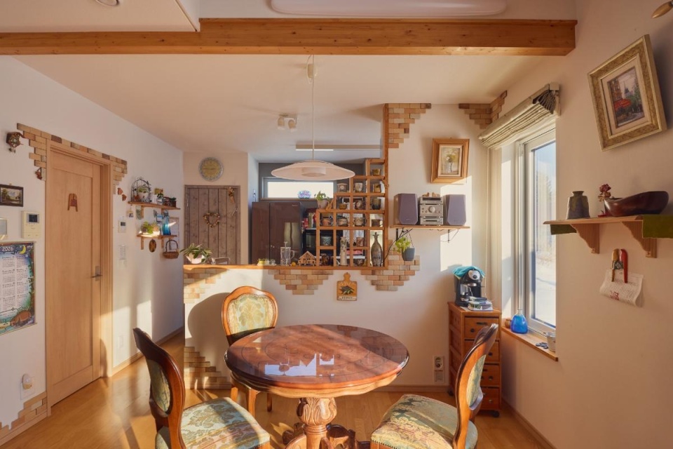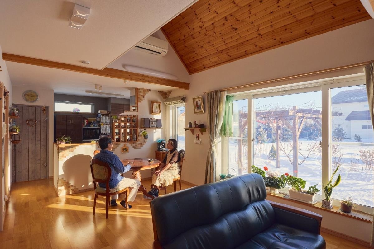 奥さま 十勝に住むなら、やっぱり三角屋根の家がいいなと憧れていました。屋根から突き出したドーマー窓は「ワイン城」の四季を楽しむため。