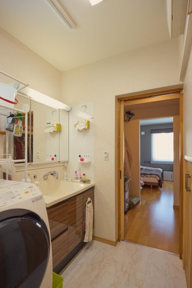 浴室やトイレはバリアフリーにして広く取りました。お客さまが来たときや、2人が年を重ねたときを考えてのことでした。