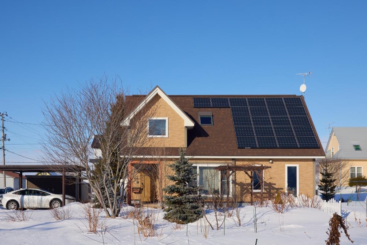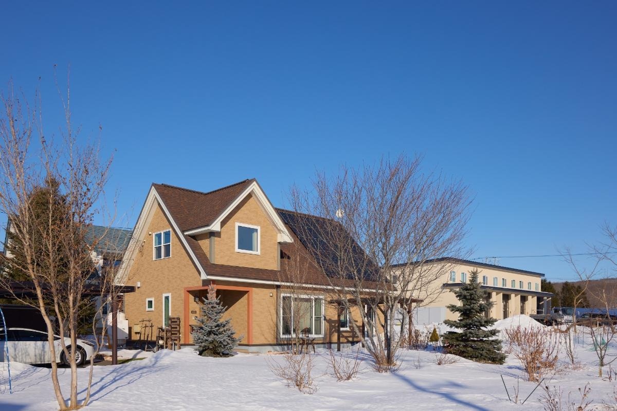落雪型の屋根にソーラーパネル4.62kWを搭載したことで、夏だけでなく冬も光熱費を抑えることができています。夏から冬季の売電分は5,000円程度で、この他に昼間は自家消費で冷暖房もできているとのこと。池田町は北海道で最も日照時間が長く、札幌の1.2倍。雪も少なく太陽光発電に向いているそうです。
