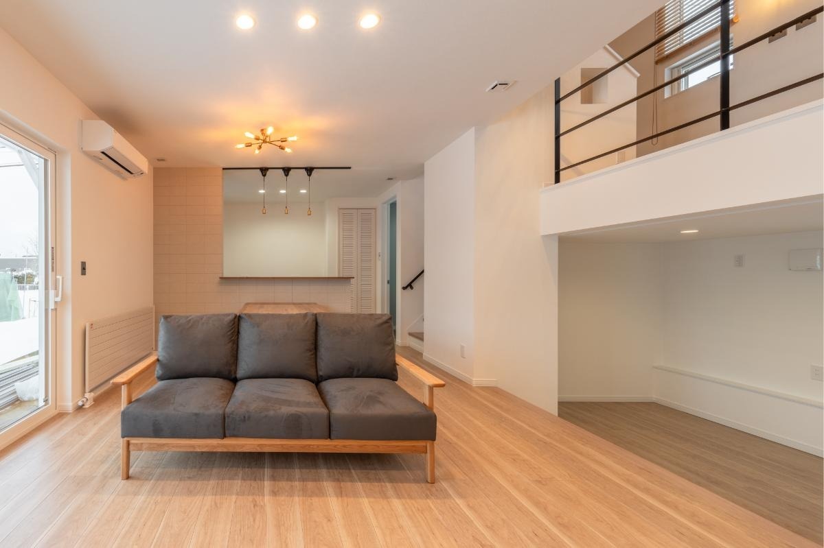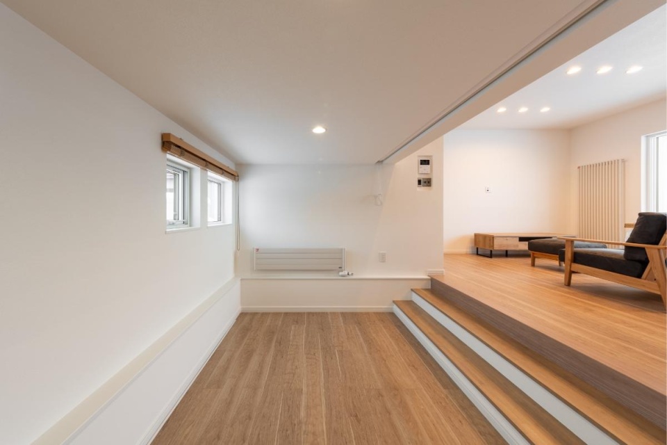 Sさん 中2階のスキップフロア下にできたこの空間も、居室として使えるよう、ダウンフロアにして天井高を確保してもらいました。子どものプレイスペースや、来客用の寝室として活用する予定です。