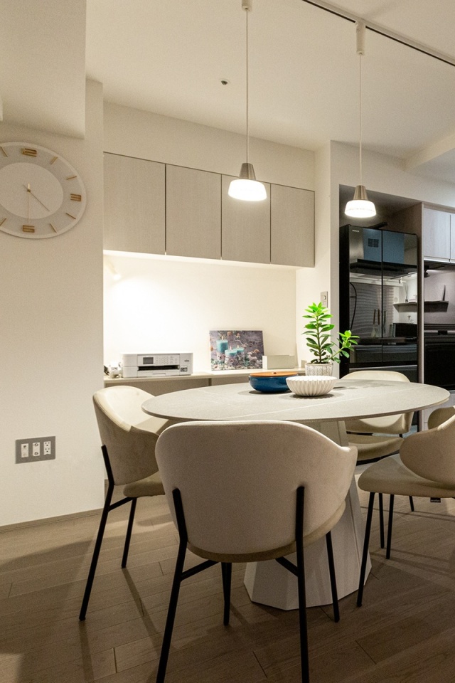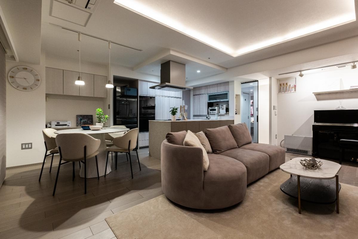 Kさん R&R studio・インテリアコーディネーターの荘司香奈さんが、いろいろな照明を提案してくれました。間接照明による光の演出で、ホテルのような雰囲気になり、インテリアにも馴染んで気に入っています。