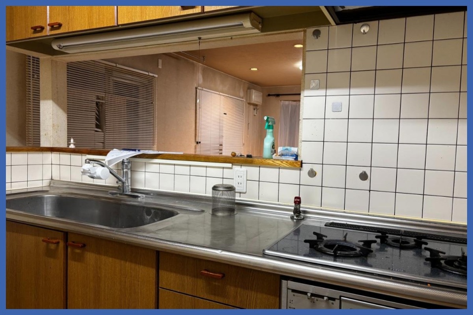 垂れ壁や吊り収納を取り除き、片側だけが壁に接したペニンシュラキッチンを採用することで、明るくて開放的な空間に生まれ変わりました。