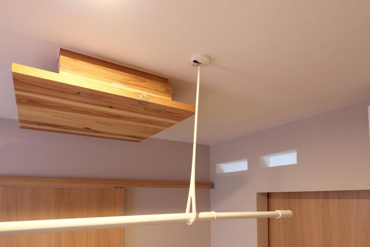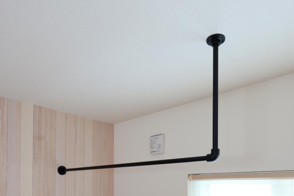 天井には、奥さまの希望で、室内物干しも取り付けました。