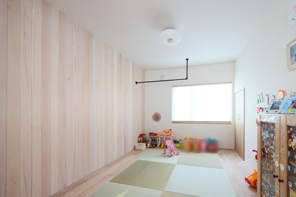 リビング横にあった和室は垂れ壁を取り除き、フラットな畳コーナーに変更。国産イグサの半畳の畳を採用し、モダンな空間に様変わりしました。今はお子さんのプレイスペースとして活用しています。
