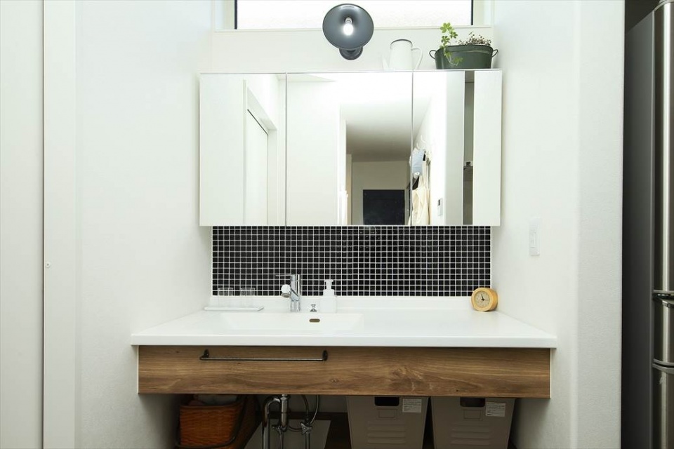 洗面ドレッサーは既製品ではなく、タイルを使って造作してもらいました。