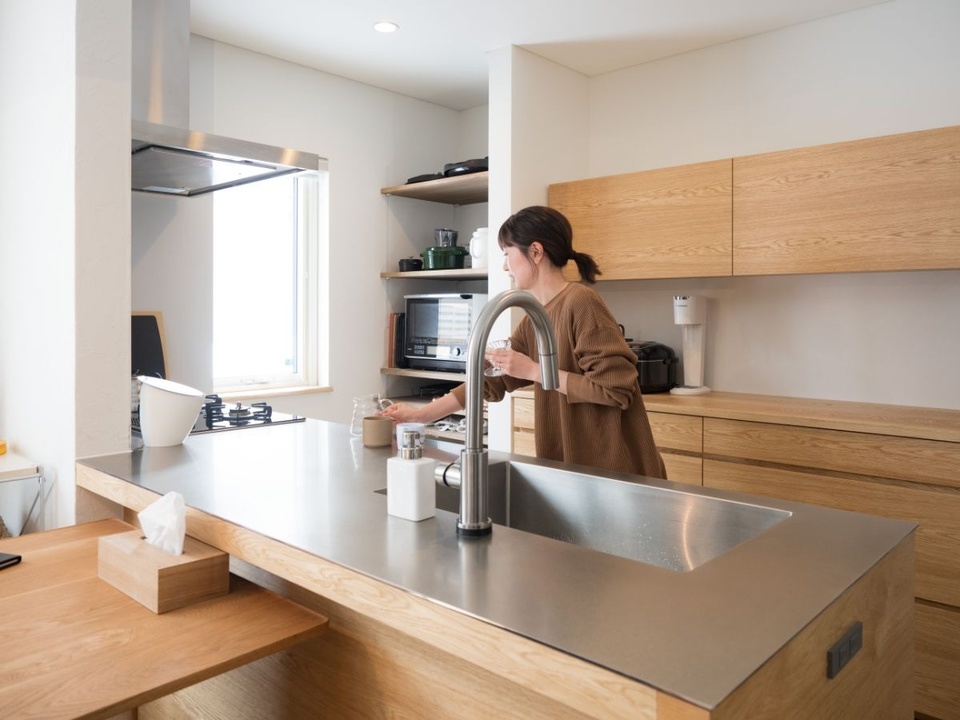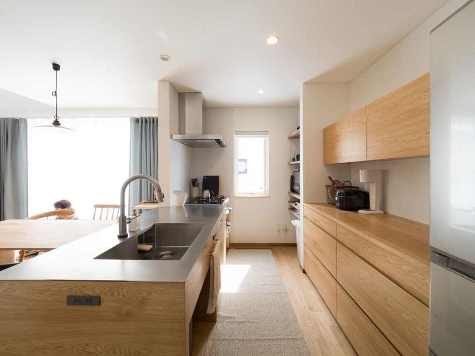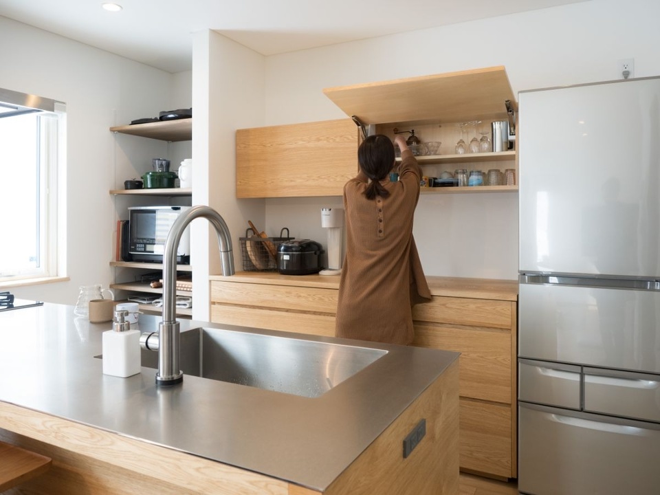 カップボードなどの収納スペースも調理の段取りなどを踏まえてプランニング。
