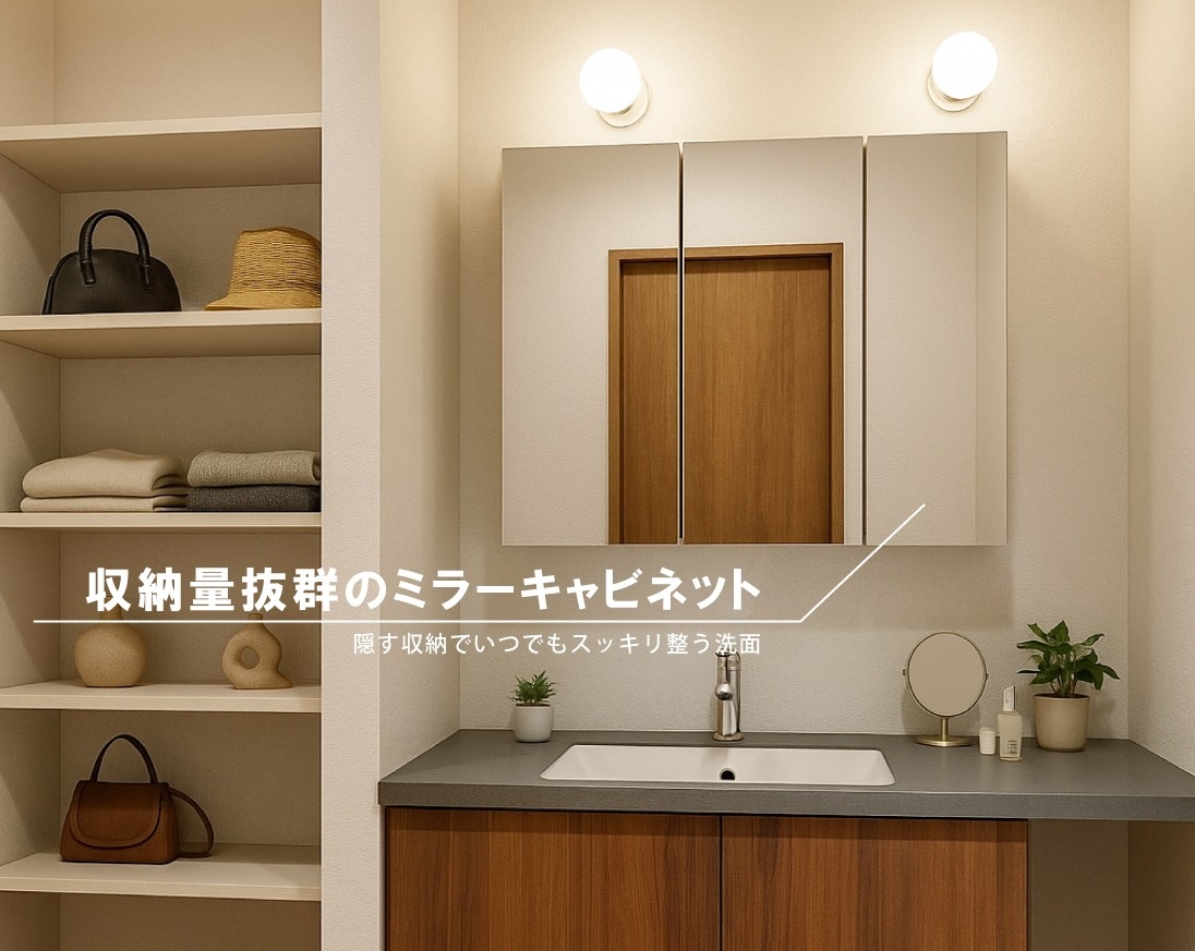 玄関ホールには、見た目も機能も心地よさも両立した、幅120cmの幅広洗面。