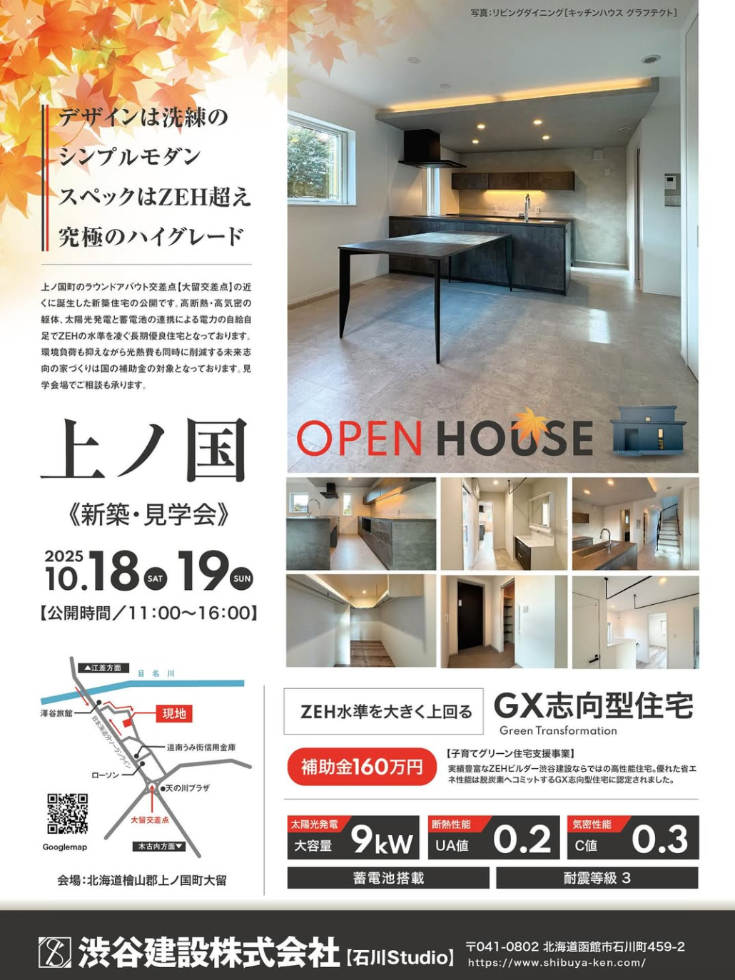 上ノ国町のラウンドアバウト交差点【大留交差点】の近くに誕生した新築住宅の公開です。高断熱・高気密の躯体、太陽光発電と蓄電池の連携による電力の自給自足でZEHの水準を凌ぐ長期優良住宅となっております。