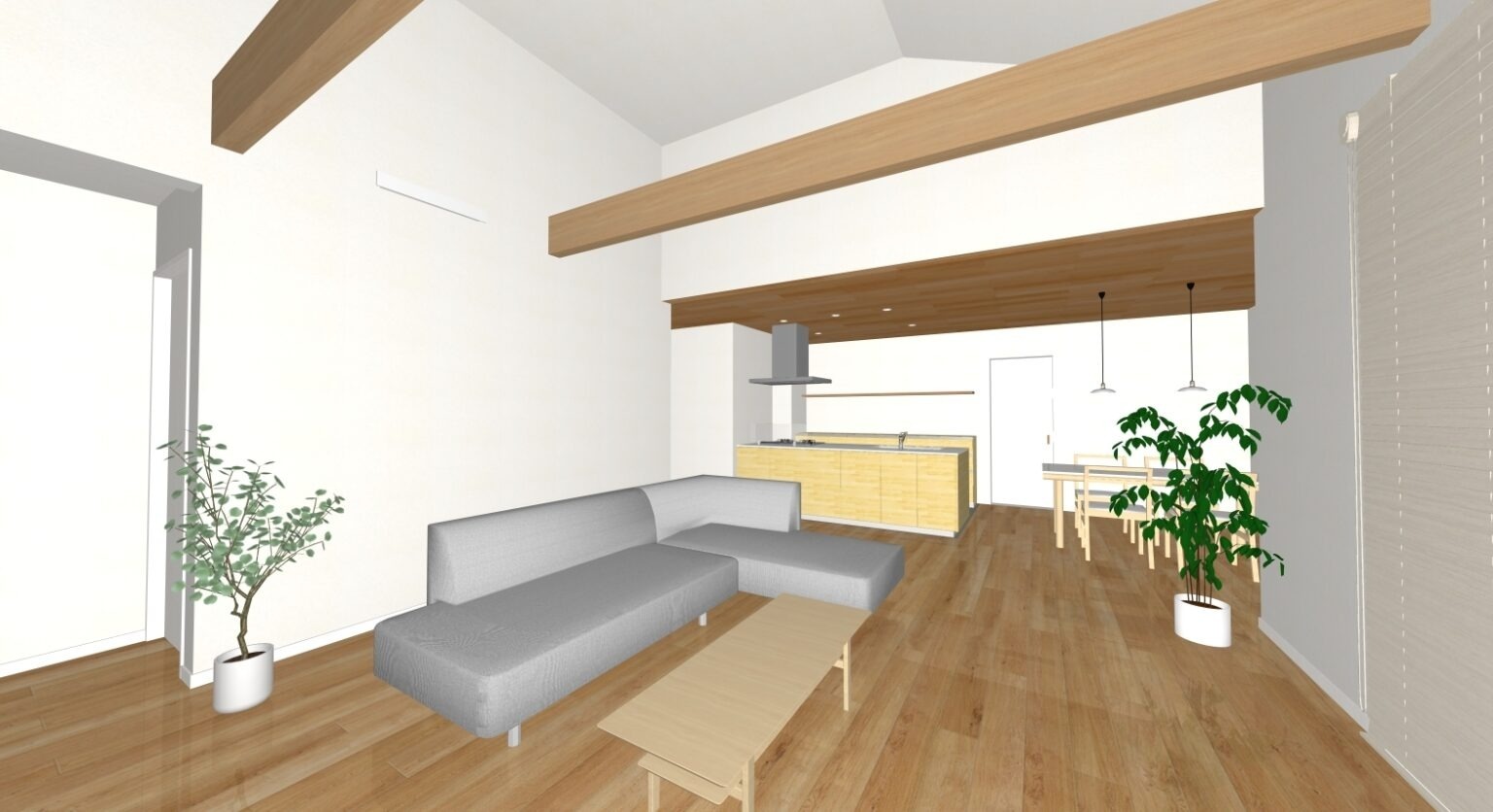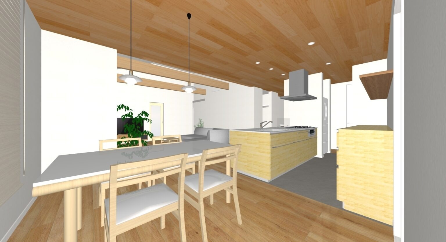 吹上天井のリビングはとっても開放的で、家族みんながゆったりと過ごせます。