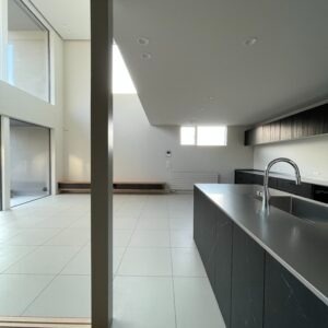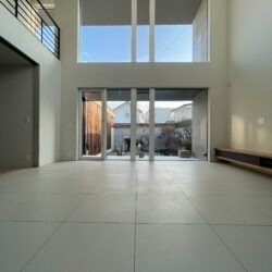 〇 リビングからつながる中庭はコンクリートの壁に囲われプライバシーの保たれた空間に