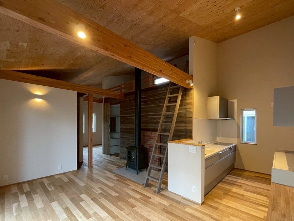 塗り壁・板張りなどで仕上げた表情豊かな内部空間