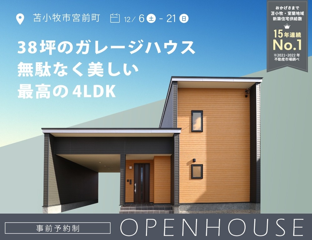 【New Open】雨や雪の日だって車の乗り降りラクラク!38坪のガレージハウスは収納も充実の無駄なく美しい最高の4LDK|10/25(土)-11/2(日)苫小牧市東開町で完成見学会