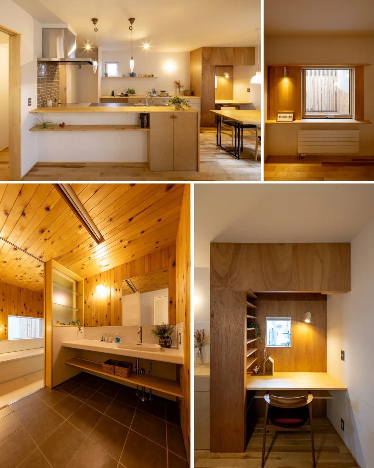 LDK・寝室・浴室を坪庭に面して配置することで、限られた敷地でも各室が緑と光に向かって開く設計です。