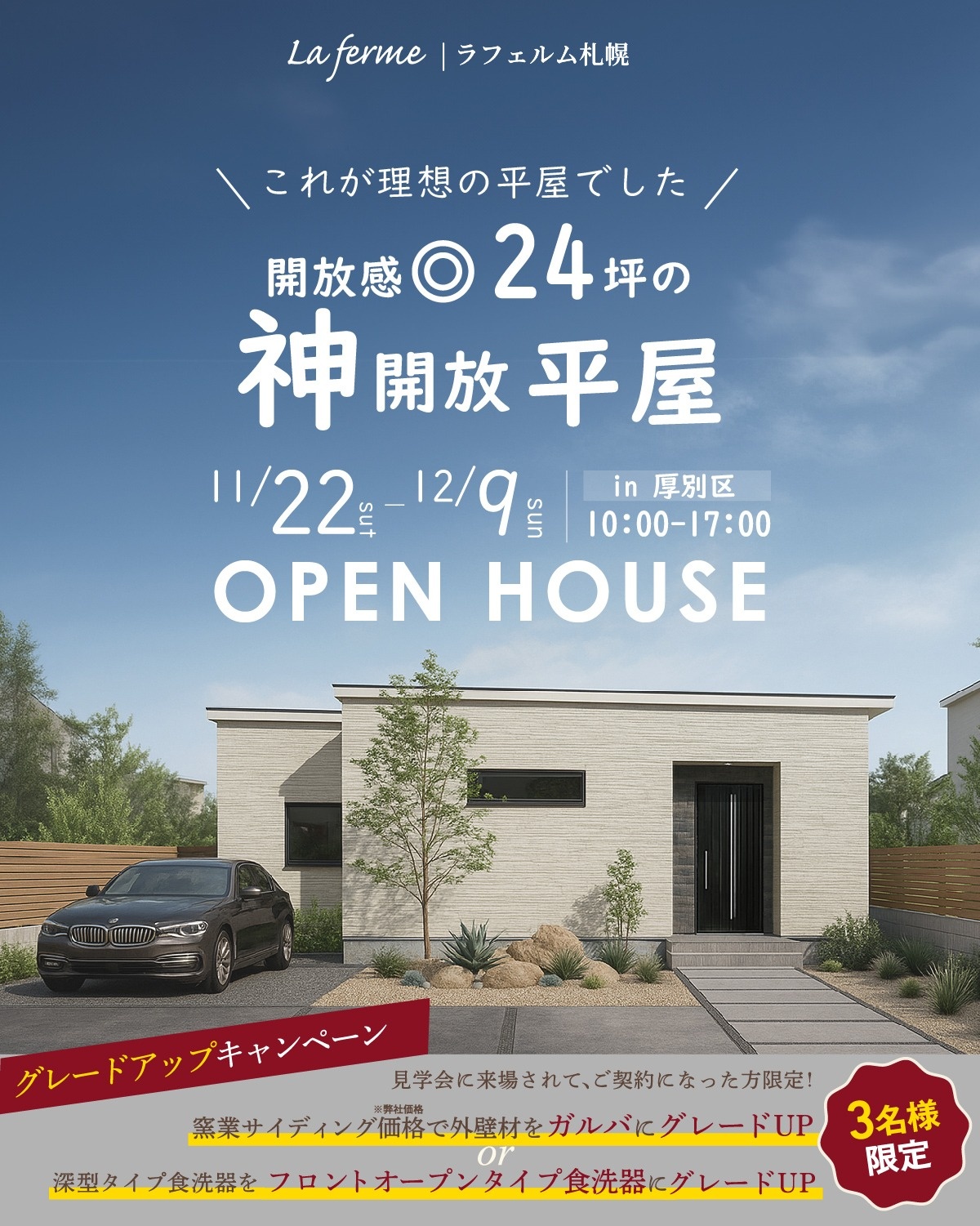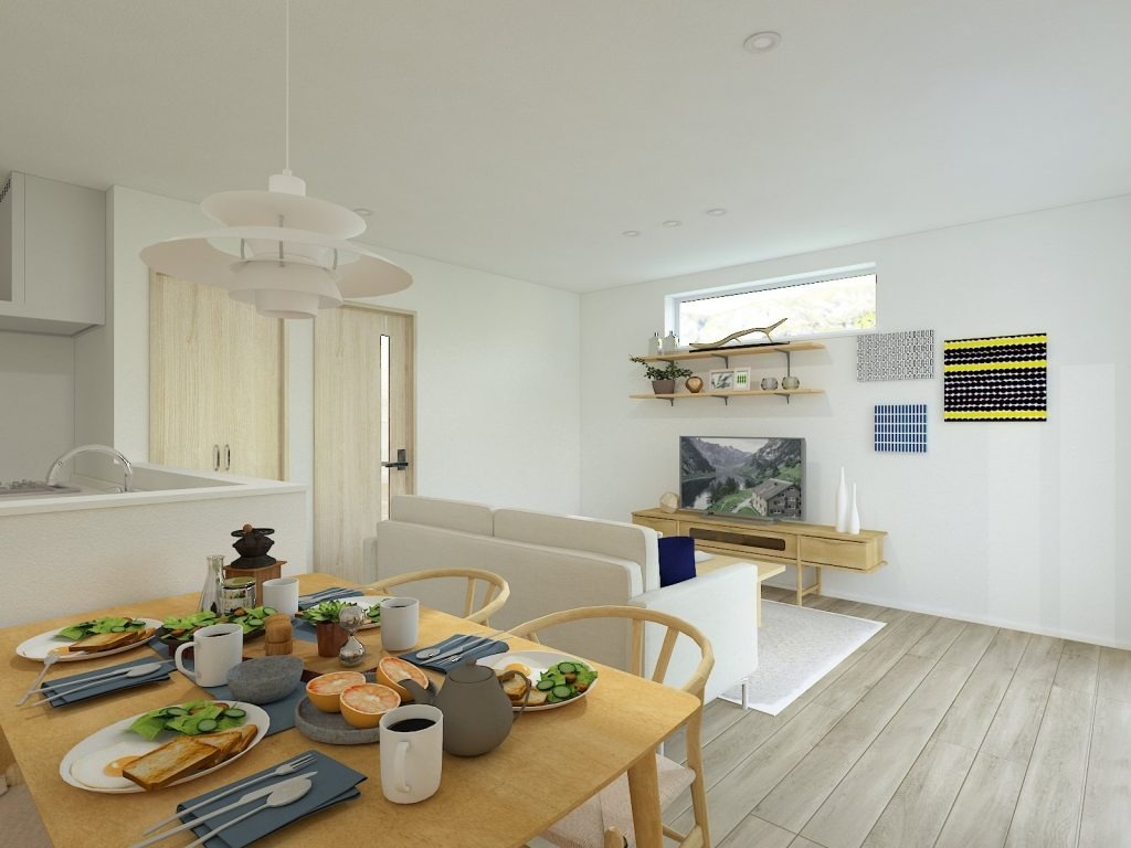 広すぎず、狭すぎず、ちょうどよく。家族が自然体で暮らせる3LDKの平屋は、18.4帖のLDKを中心に、収納・ユーティリティ・各部屋の距離感までバランスよく整っています。動線もシンプルで使いやすく、毎日をストレスなく過ごせるこれぞ求めていた平屋です。