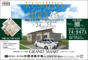 1月24~25日に釧路市で平屋のオープンハウスを開催します。 「平屋を建てたい」「平屋か2階建てか迷っている」「建てるかどうか迷っている」 こんな方はぜひお越しください!詳細は中標津展示場(0153-74-9471)までご連絡を!