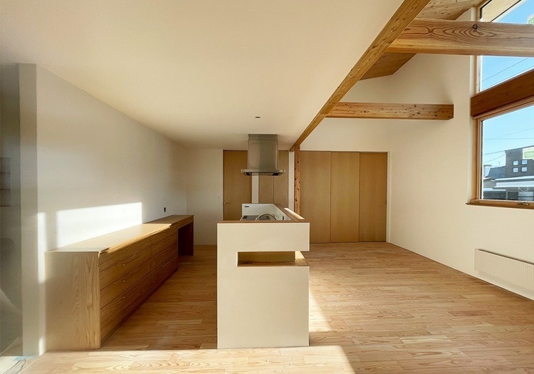 天井の高さを活かしたLDKは、