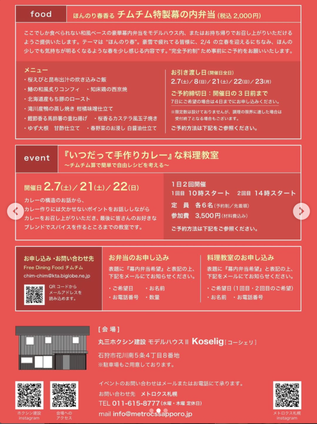 | 会場 | モデルハウスⅡ Koselig 石狩市花川南5条4丁目8番地 |