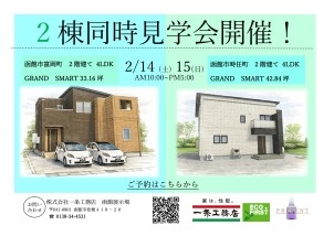 お家見学会2棟同時開催! 2月14・15日 函館市富岡町・時任町 実際の完成現場を見たい方へ!充実の住宅設備と高性能な住まいをご体験いただけます! 1時間に1組限定の完全予約制で安心してご案内いたします!お気軽にお問い合わせください。