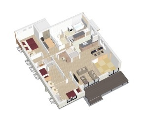 約24帖のLDKに洗面脱衣別の回遊同線