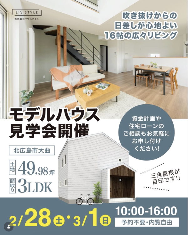 今人気の北広島エリアの住宅街に、モデルハウスを公開しています。