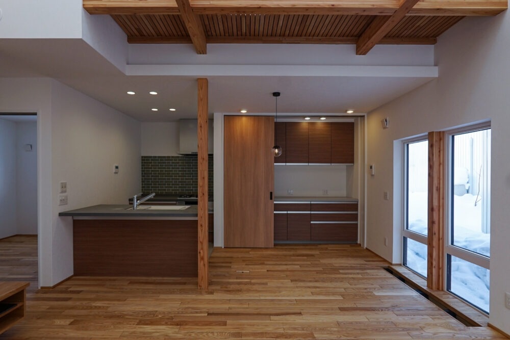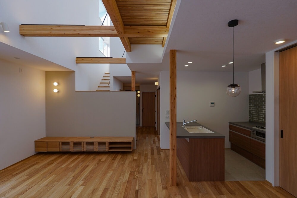 庭からリビングへと緩やかに繋がる「縁側」が、外の心地よさを内部に取り込みます。