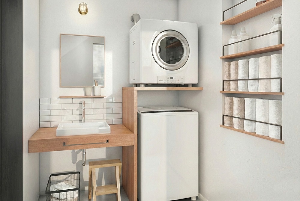 洗う・乾かす・畳む・しまうが最短経路で完結。重い洗濯物を持って歩く日々は、もう終わり。