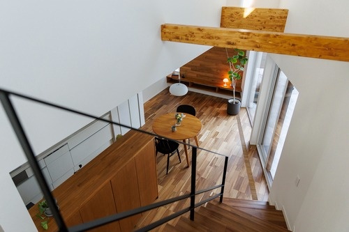吹き抜けからたっぷりと光が入り、延床面積以上のゆとりを感じられる贅沢な空間です。