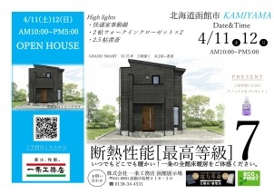 お家見学会開催! 4月11・12日 函館市神山 実際の完成現場を見たい方へ!充実の住宅設備と高性能な住まいをご体験いただけます! 1時間に1組限定の完全予約制で安心してご案内いたします!お気軽にお問い合わせください。