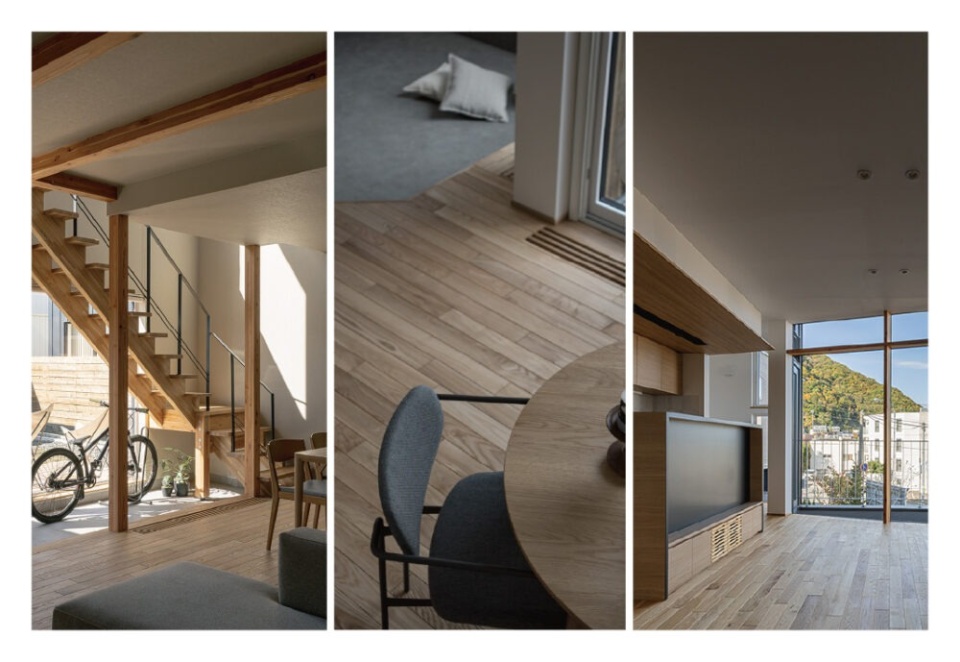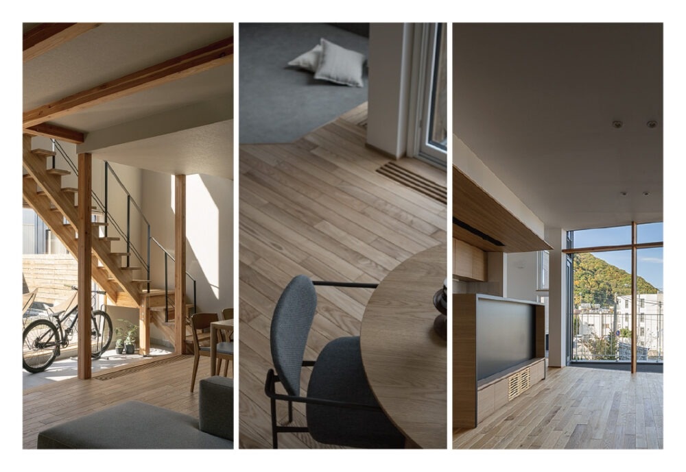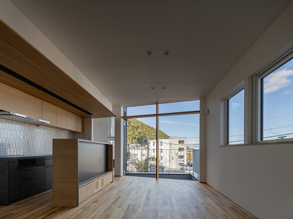 外壁の道南杉や無垢フローリングなど、マンションでありながら木の温もりに包まれる贅沢な空間。